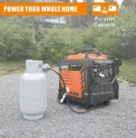 Designed to operate on multiple fuel types, this generator offers flexibility and convenience, allowing you to choose the most accessible fuel source—whether it’s gasoline, propane, or natural gas.